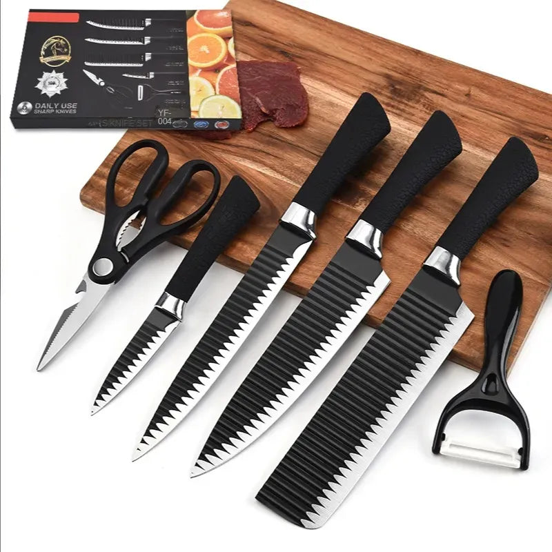 Upgrade your kitchen with this professional-grade 6-piece knife set – designed for precision cutting, durability, and effortless food release thanks to its advanced non-stick coating. Perfect for meat, veggies, herbs, and more!